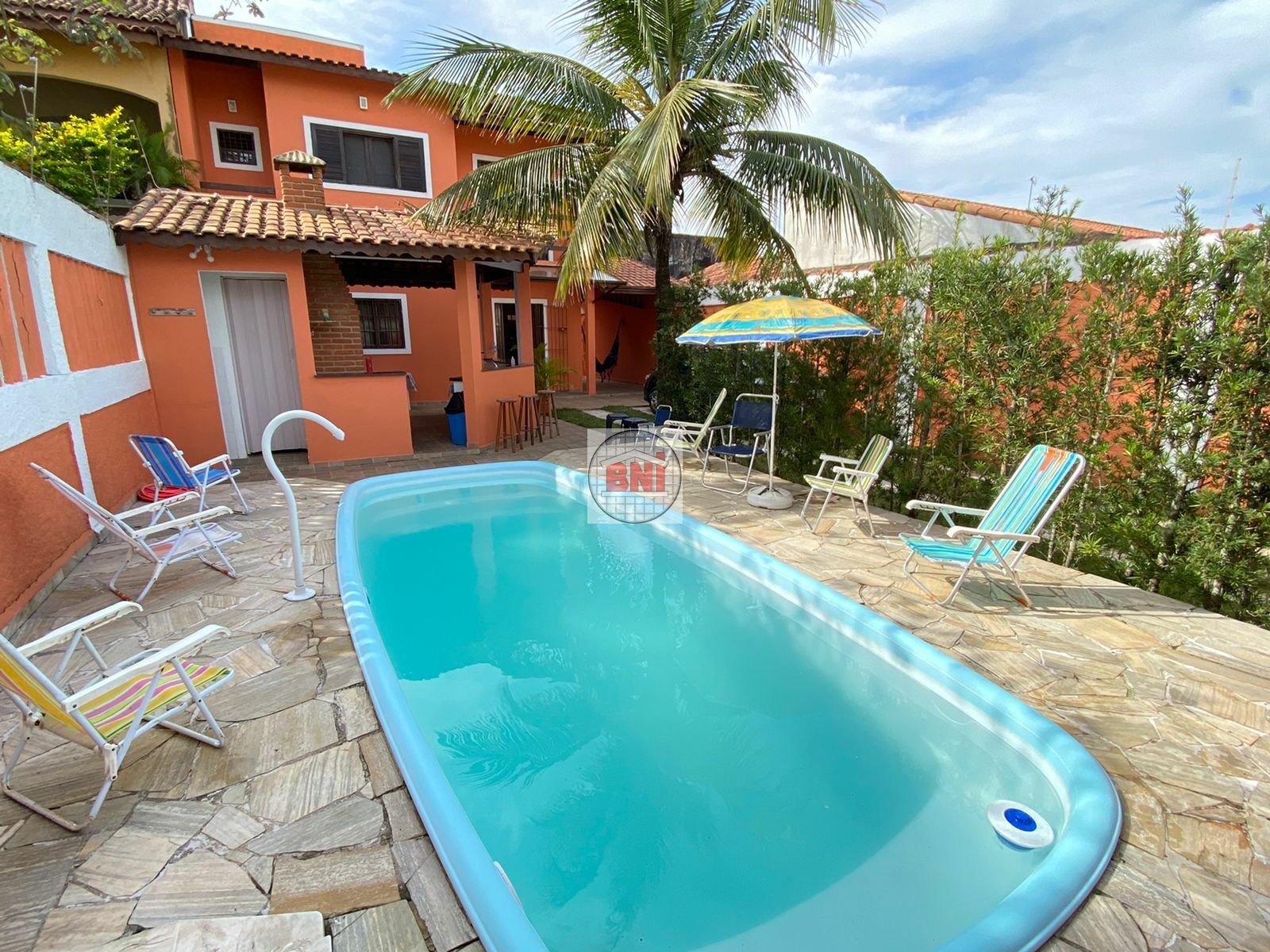 - 4 vagas para carros sendo 1 coberta; Área de lazer arborizada com piscina, ducha, lavabo, quarto de despejo, fogão, forno a lenha, pia e churrasqueira; Sala ampla e arejada com dois ambientes, sala de TV e sala de jantar; Cozinha arejada com acesso à área de serviço; 1 banheiro social e 1 dormitório no piso térreo; 4 dormitórios no pavimento superior, sendo 2 suítes e com varanda, mais um banheiro social.